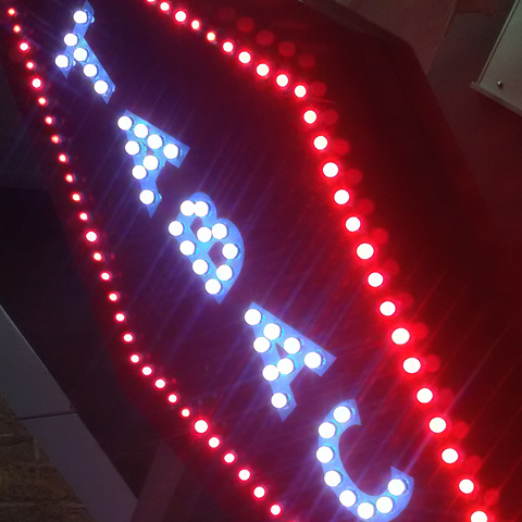 Texte TABAC lumineux par monoleds blanches et adhésif.